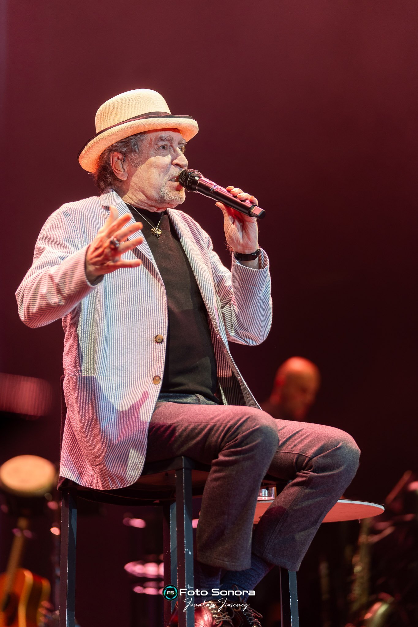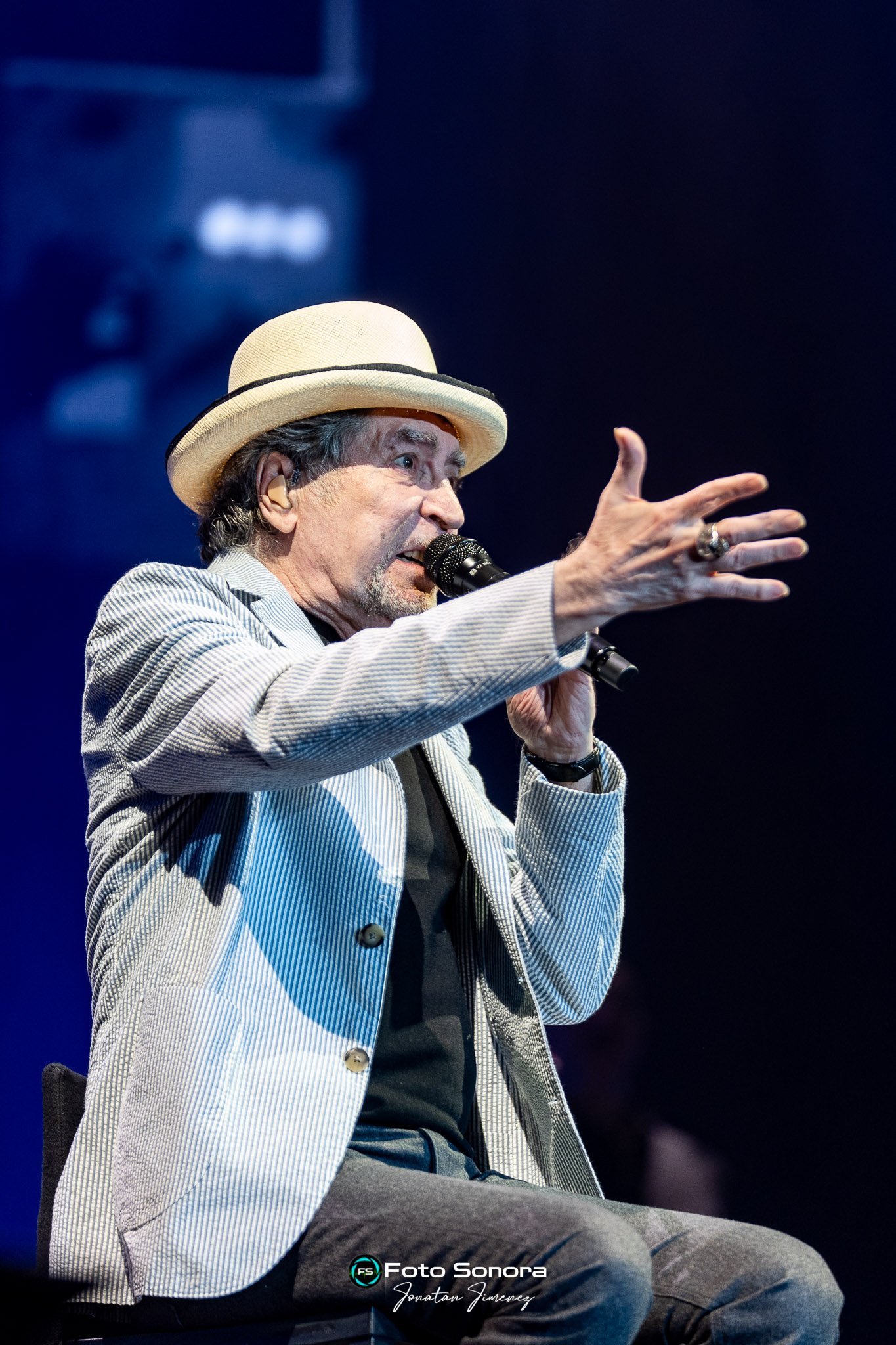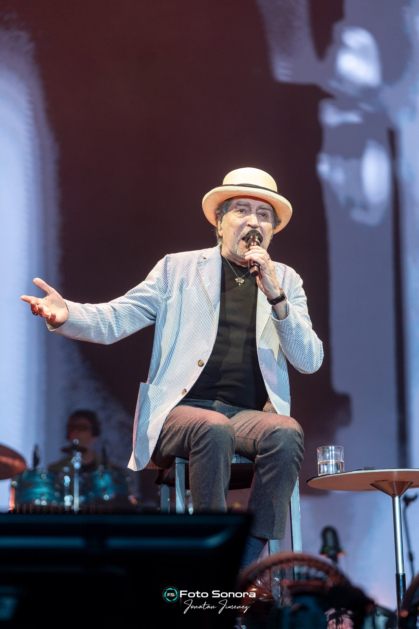 El show regaló instantes memorables, como el homenaje a Joan Manuel Serrat, presente en el público, al dedicarle «Calle Melancolía». No faltaron referencias a íconos como Bob Dylan y Chavela Vargas, especialmente en las interpretaciones de «Peces de ciudad» y «Por el bulevar de los sueños rotos», respectivamente. El clímax llegó con «Una canción para la Magdalena», en la que Sabina, junto a Mara Barros, emocionó al público canalizando cada verso con la intensidad de una despedida real.