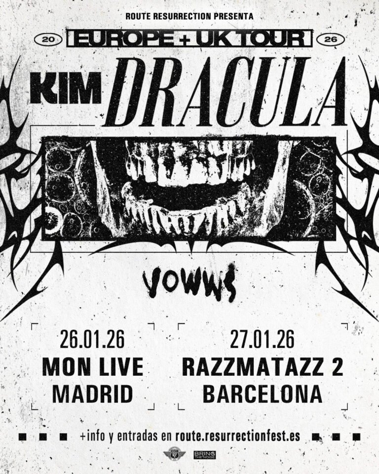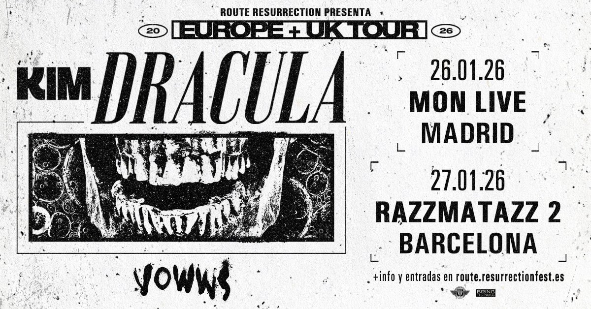 La gira Route Resurrection traerá por primera vez a Kim Dracula a España con dos únicas fechas: Madrid y Barcelona. La parada barcelonesa será el 27 de enero de 2026 en Razzmatazz 2, un recinto perfecto para vivir de cerca una propuesta que se mueve entre el metal, el industrial, el post-hardcore, el trap y la experimentación más oscura.